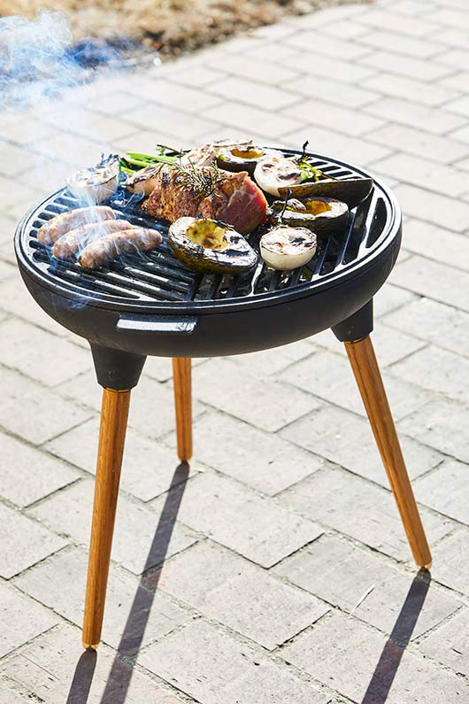シンプル、かつ木脚と鋳鉄の組み合わせの美しいデザインが目を引くエープラスオリジナルのBBQグリルです。